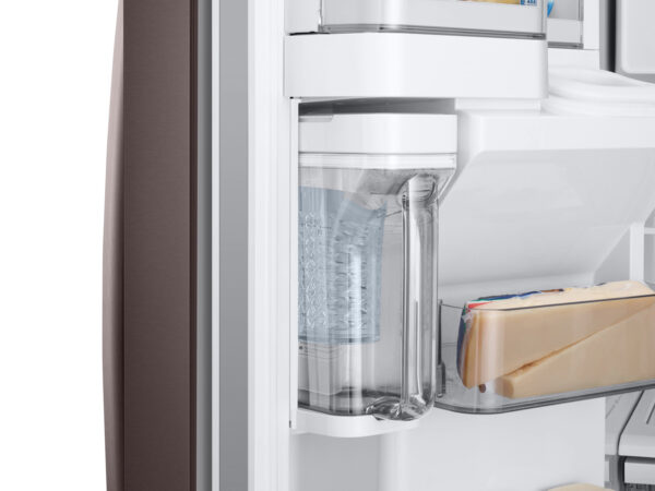 A built-in pitcher that automatically refills with filtered water and the option to infuse with a flavor of your choice.
